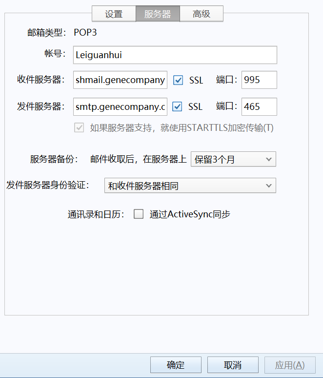 POP3服务器:shmail.genecompany.com (基因科技可填入:mail.genetech.com.cn
